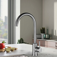 Acabado cepillado de lujo Acero inoxidable Latón Diseño de un solo orificio Grifo de cocina con caño giratorio de 360 grados
