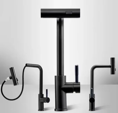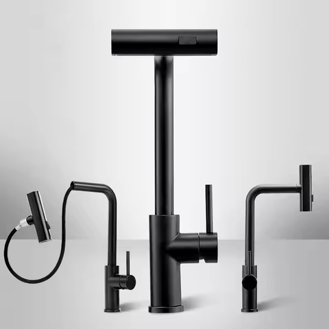 Grifo de cocina con rociador extraíble negro mate de acero inoxidable 304 profesional con cascada de doble función